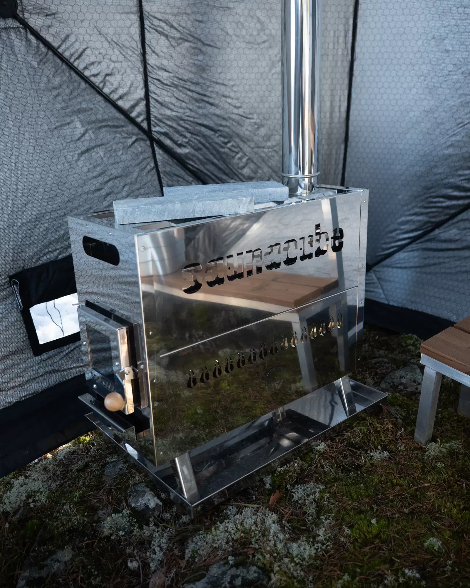 Vuokrattava sauna on laadukas ja aito alkuperäinen Saunacube M Panorama. Teltassa tunnelmaa luo isot ikkunat, jotka voi suunnata vaikka järvelle tai merelle päin. Ei vaadi erillistä rungon kasausta, teltta popsautellaan alle 2 minuutissa paikalleen. Hitaimmillaankin pystytys vie vaan 10 minuuttia. Lauteille mahtuu kerralla noin 6-10 saunojaa.