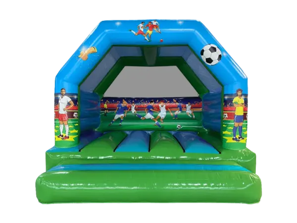 Jalkapalloaiheinen pomppulinna tuo riemua ja energiaa kaikenikäisille juhlijoille! Tilava L-kokoinen pomppulinna sopii täydellisesti lasten syntymäpäiviin, urheilutapahtumiin tai muihin hauskoihin tilaisuuksiin.